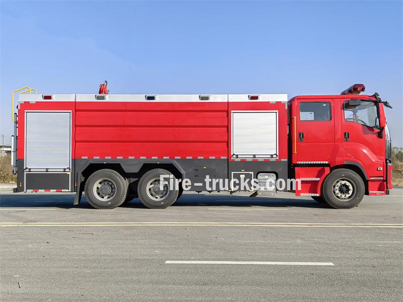 Isuzu GIGA 6X4 10 ကုဗမီတာ ရေမြှုပ်မီးသတ်ထရပ်ကားသည် စုစုပေါင်းကားအလေးချိန် 35 တန်ရှိပြီး ဘီးအောက်ခံ 4800+1370 မီလီမီတာရှိသော Isuzu GIGA 6X4 ကိုယ်ထည်ကို အခြေခံထားသည်။ Isuzu 6WG1-TCG62 520hp အင်ဂျင်နှင့် Fast 12-speed ဂီယာတပ်ဆင်ထားပါသည်။ စူပါအဆောက်အဦ၏အရှေ့ဘက်တွင် စက်ကိရိယာအခန်း၊ အလယ်အပိုင်းတွင် 8000L ကာဗွန်သံမဏိရေတိုင်ကီနှင့် 2000L သံမဏိအမြှုပ်တိုင်ကီပါရှိပြီး နောက်ဘက်တွင် CB10/140-XZ မီးသတ်ပန့်၊ ထိန်းချုပ်ခုံ၊ မီးသတ်ပိုက်များ၊ မီးသတ်ကိရိယာများ တပ်ဆင်ထားသော PL8/64 မီးသတ်မော်နီတာ ခေါင်မိုးပေါ်တွင် တည်ရှိသည်။