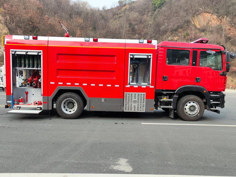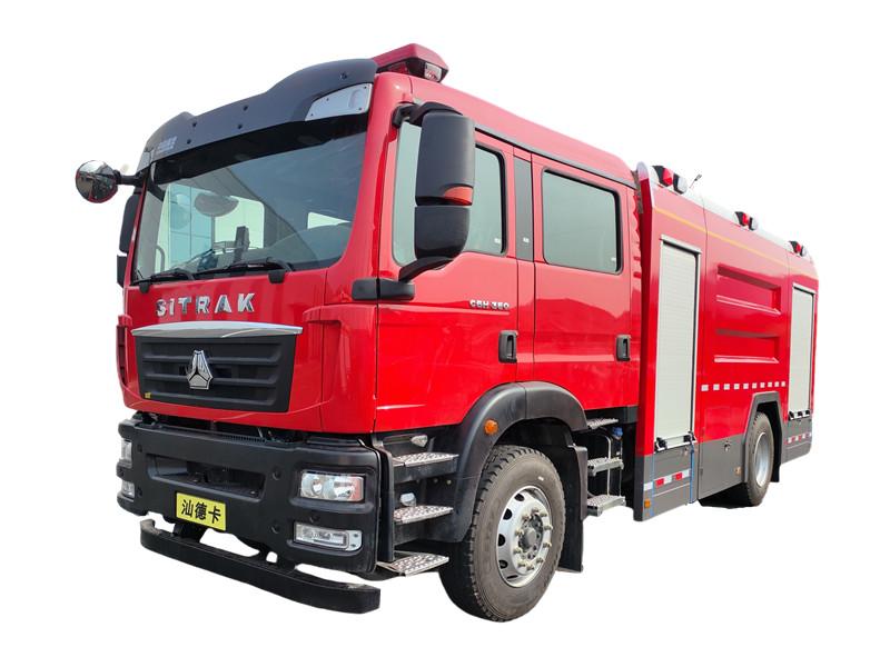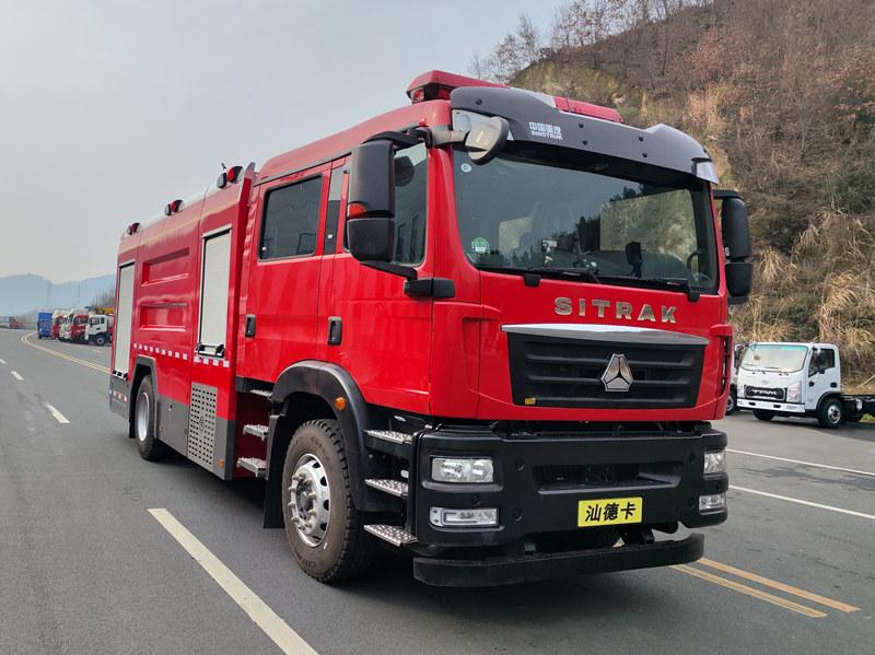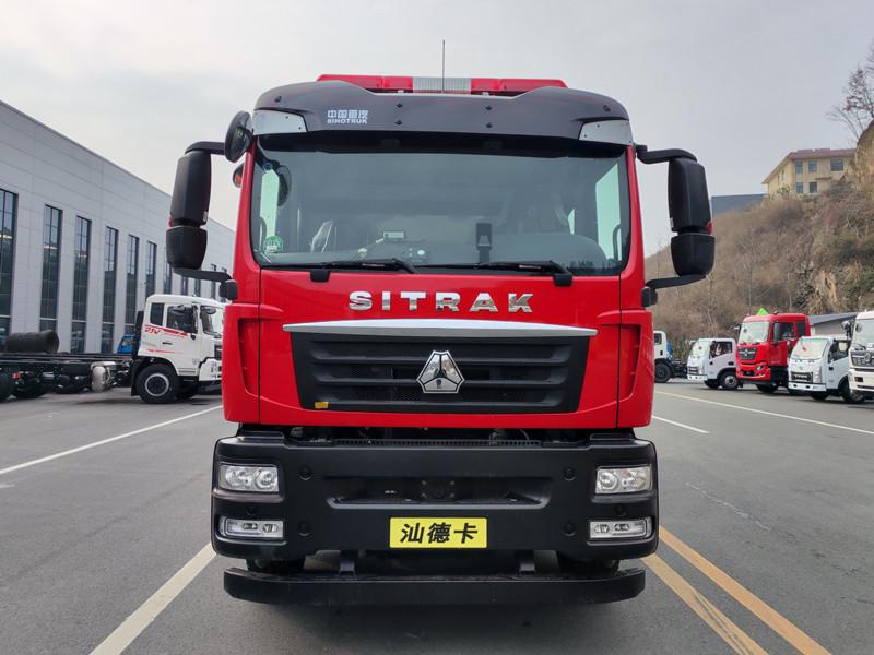SINOTRUK SITRAK ရေမြှုပ်မီးသတ်ထရပ်ကို ZZ5206N471GF5 ကိုယ်ထည်ပေါ်တွင် တည်ဆောက်ထားပြီး လူခြောက်ဦးဆံ့သော နှစ်တန်းတက္ကစီဒီဇိုင်းပါရှိပါသည်။ မြင်းကောင်ရေ 350 စွမ်းအား MC07H.35-60 Euro VI အင်ဂျင်ကို 10-speed ဂီယာဖြင့်တွဲဖက်ထားပြီး အမြင့်ဆုံးအမြန်နှုန်း 105 km/h ကိုရရှိနိုင်ပါသည်။ ယာဉ်သည် 8,540 × 2,550 × 3,450 မီလီမီတာ ရှိပြီး အလေးချိန် 8,200 ကီလိုဂရမ်ရှိသည်။ ၎င်းတွင် 6,000 လီတာ ကာဗွန်စတီးလ် ရေလှောင်ကန်နှင့် 2,000 လီတာ သံမဏိ အမြှုပ်များ တပ်ဆင်ထားသည်။ မီးသတ်ပန့်သည် ဖိအား 1.0 MPa ဖြင့် တစ်စက္ကန့်လျှင် 60 လီတာနှုန်းကို ထုတ်ပေးသည်။ PL48 မီးသတ်မော်နီတာတွင် အကွာအဝေး 70 မီတာ (ရေ) / 60 မီတာ (အမြှုပ်များ) တွင် 360° အလျားလိုက်လှည့်ခြင်းနှင့် +80° မှ -30° elevation adjustment ပါရှိသည်။ မြို့ပြနှင့် စက်မှုလုပ်ငန်းသုံး မီးဘေးကယ်ဆယ်ရေးလုပ်ငန်းများအတွက် သင့်လျော်ပြီး ၎င်းသည် စွယ်စုံရမီးငြှိမ်းသတ်နိုင်စွမ်းများနှင့် စွမ်းဆောင်ရည်မြင့် ပါဝါကို ပေါင်းစပ်ထားသည်။