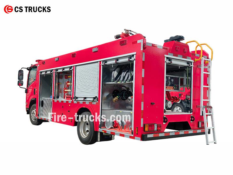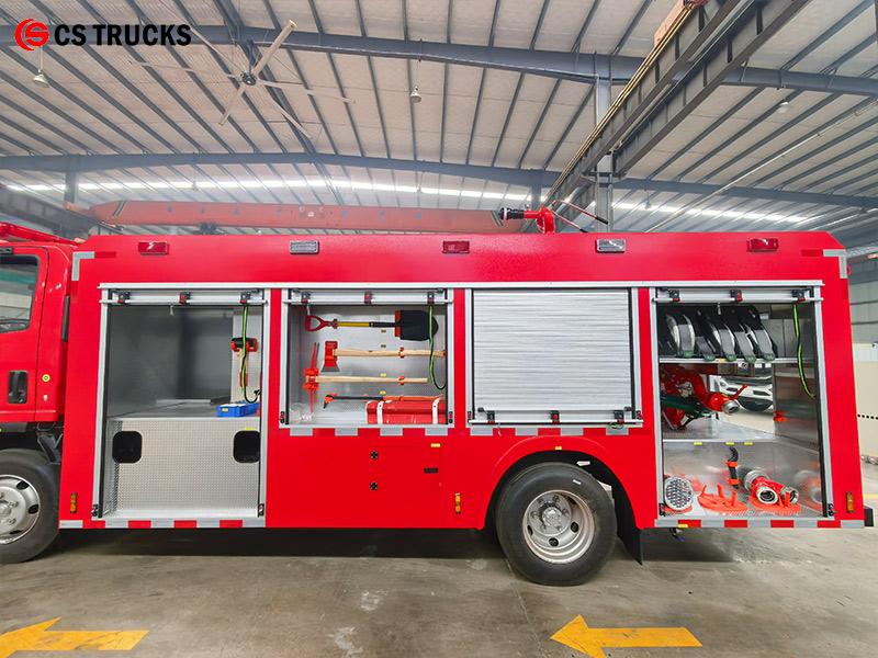 ISUZU 4000L ရေမီးသတ်ကားသည် 4×2 ISUZU ကိုယ်ထည်ပေါ်တွင် တည်ဆောက်ထားသော 175 HP အဆင့်သတ်မှတ်ထားသော 4HK1-TC အင်ဂျင်ဖြင့် မောင်းနှင်သည်။ 4,000L ရေတိုင်ကီကို ကားနောက်ခန်းတွင် တပ်ဆင်ထားပြီး CB10/30-RS မီးသတ်စုပ်စက် (1.0MPa တွင် 30L/s) ကို နောက်စုပ်စက်ခန်းတွင် တပ်ဆင်ထားသည်။ PS8/30W အမိုးစောင့်ကြည့်စက်သည် ရေအကွာအဝေး 60 မီတာ သို့မဟုတ် ထို့ထက်ပို၍ ဖြန့်ကျက်ပေးကာ အလျားလိုက် 360° နှင့် ဒေါင်လိုက် -35° မှ 70° အထိ လွှမ်းခြုံထားသည်။ ဘေးနှစ်ဖက်စလုံးရှိ ပစ္စည်းကရိယာအခန်းများတွင် မီးသတ်ပိုက်များ၊ စုပ်ပိုက်များနှင့် ကယ်ဆယ်ရေးကိရိယာများအတွက် သိုလှောင်ရန်နေရာများ ပါဝင်ပြီး စံဆက်စပ်ပစ္စည်းများအားလုံး ပါဝင်သည်။